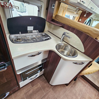 Upon entering, you're greeted by a spacious and inviting lounge area. The large lounge, enhanced by swivel seats, provides a perfect space for relaxation and socializing. Whether you're unwinding after a day of exploration or hosting new friends you've met on your journey, this area transforms seamlessly to suit your needs.The twin rear beds offer plush sleeping quarters, ensuring a restful night's sleep. Positioned to maximize space and comfort, these beds provide a cozy retreat at the end of the day. With ample storage underneath, you can keep your living area clutter-free and organized, making your travels all the more enjoyable. Equipped with a full kitchenette of three ring hob, oven & 3-way fridge freezer.