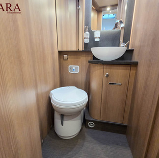 The Rapido 690F has a separate shower and toilet area. This 690F also offers ample storage space with its large garage, ensuring that all your travel essentials are easily accessible. With swivel seats, it really opens up the lounge area of the motorhome.